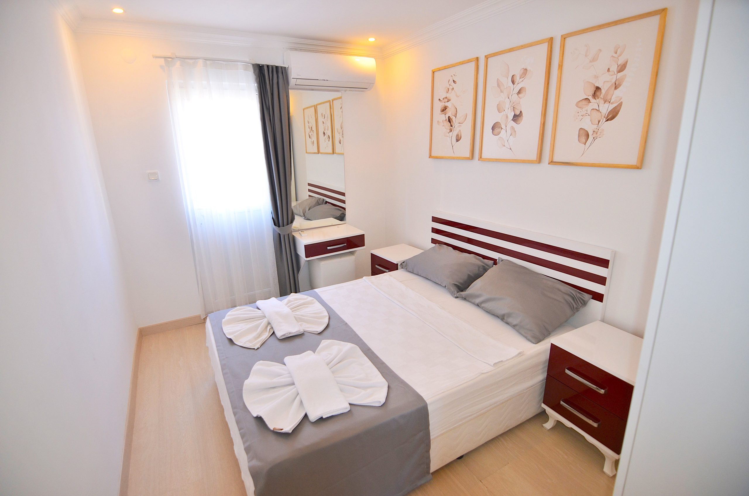 Odalarımızın her birinde konforunuz ve keyfiniz düşünülerek seçilmiş detaylar bulunmaktadır. Odalarımızda sunduğumuz olanaklar arasında klima, 22 inç LCD televizyon, internet erişimi ve 24 saat sıcak su bulunuyor.