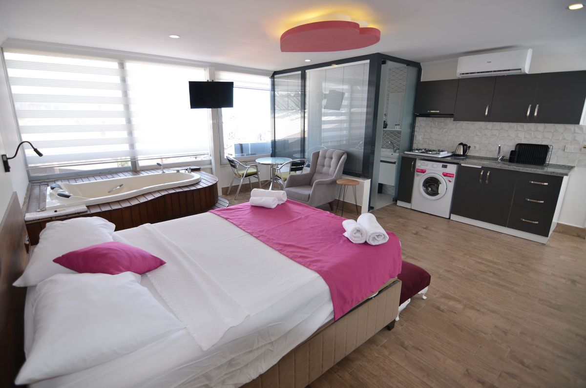 Jakuzili dairelerimiz 2 kişiliktir. Bu lüks konaklama seçeneği ile özel anlarınızı romantik bir atmosferde yaşayabilirsiniz. Odalarımızın her biri konforunuz ve keyfiniz için seçilmiş detaylara sahiptir. Odalarımızda sunduğumuz olanaklar arasında klima, LCD televizyon, internet erişimi ve 24 saat sıcak su bulunmaktadır.